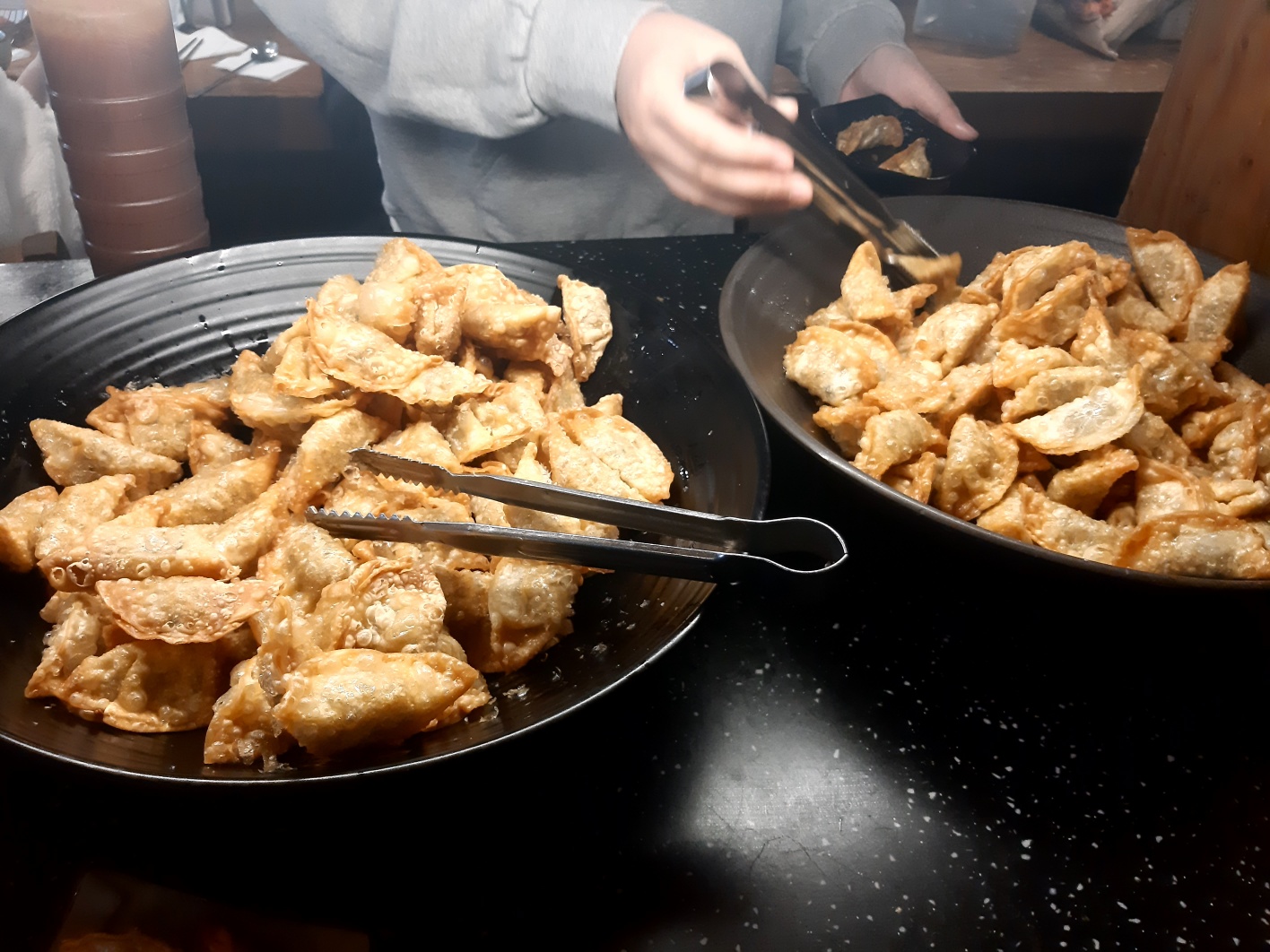 메뉴를 주문하고 보니 셀프 코너가 보였어요. 군만두와 단무지,김치가 준비되어 있고, 간단히 먹을 수 있는 잔치국수가 있었어요. 사진에 보이는 김과 김치는 국수에 먹는 반찬이었고요, 사진에는 없지만 옆에 국물통에서 잔치국수 국물을 따르면 됩니다. 국수는 작은 종지에 아담한 양이라 먹고 한 번 더 갔다 먹었지만 사진은 없네요. 이 셀프코너가 있어서 기다리는 동안 배고프지 않고 지루하지 않게 기다릴 수 있었어요. 좋은 아이디어라고 생각했어요.