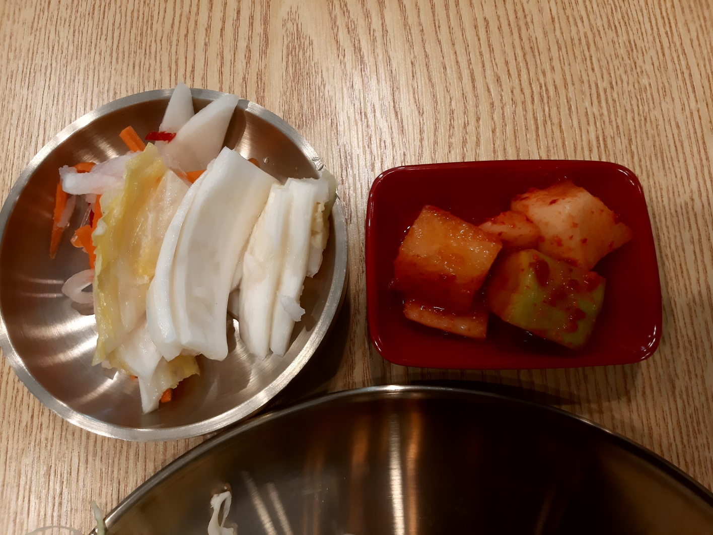 한 쪽에는 이렇게 셀프 코너가 있고요, 셀프 코너에는 백김치와 깍두기,단무지가 있어요. 백김치가 있는 게 특이하다 했는데, 이 백김치 너무 맛있었어요. 시원하고 달지않고. 요즘 어딜가나 음식들이 너무 달아서 돈가스 소스도 단곳이 많고요.