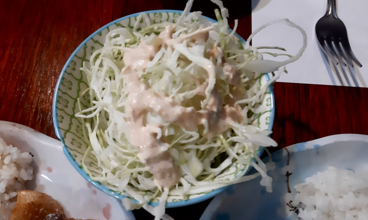 무나 고추 장아찌, 양배추 샐러드는 셀프 코너에서 가져오면 돼요.