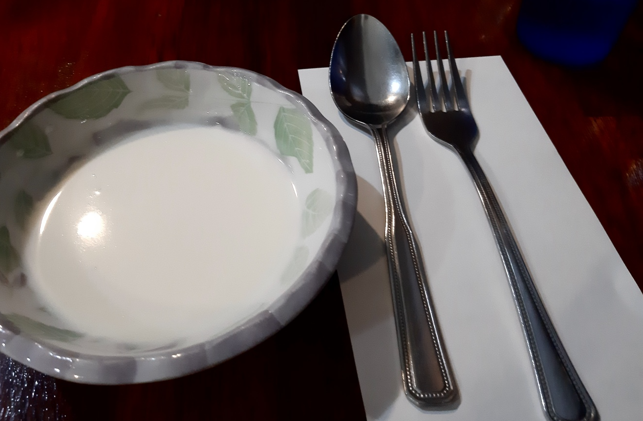 맨 처음 수프가 나왔는데요, 이 스프 완전 제 취향이었어요. 기름 하나 없는 담백한 우유 맛이 너무 좋았어요. 밀가루도 들어가지 않고 버터 같은 기름진 것도 없는 것 같고 달지도 않고 그냥 담백 그 자체. 돈가스를 기대하게 만드는 맛~~