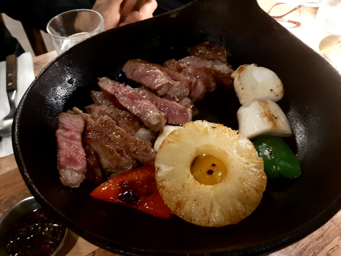 이베리코 스테이크는 리뷰에 소고기 같다는 말이 많았는데, 진심이었어요. 어찌 돼지고기가 이렇게 냄새도 하나도 돼지 같지 않고 부드럽고 맛있는지 같이 나온 소스도 맛있었어요.(지미추리 소스라네요) 직접 구워 먹는 거고요.