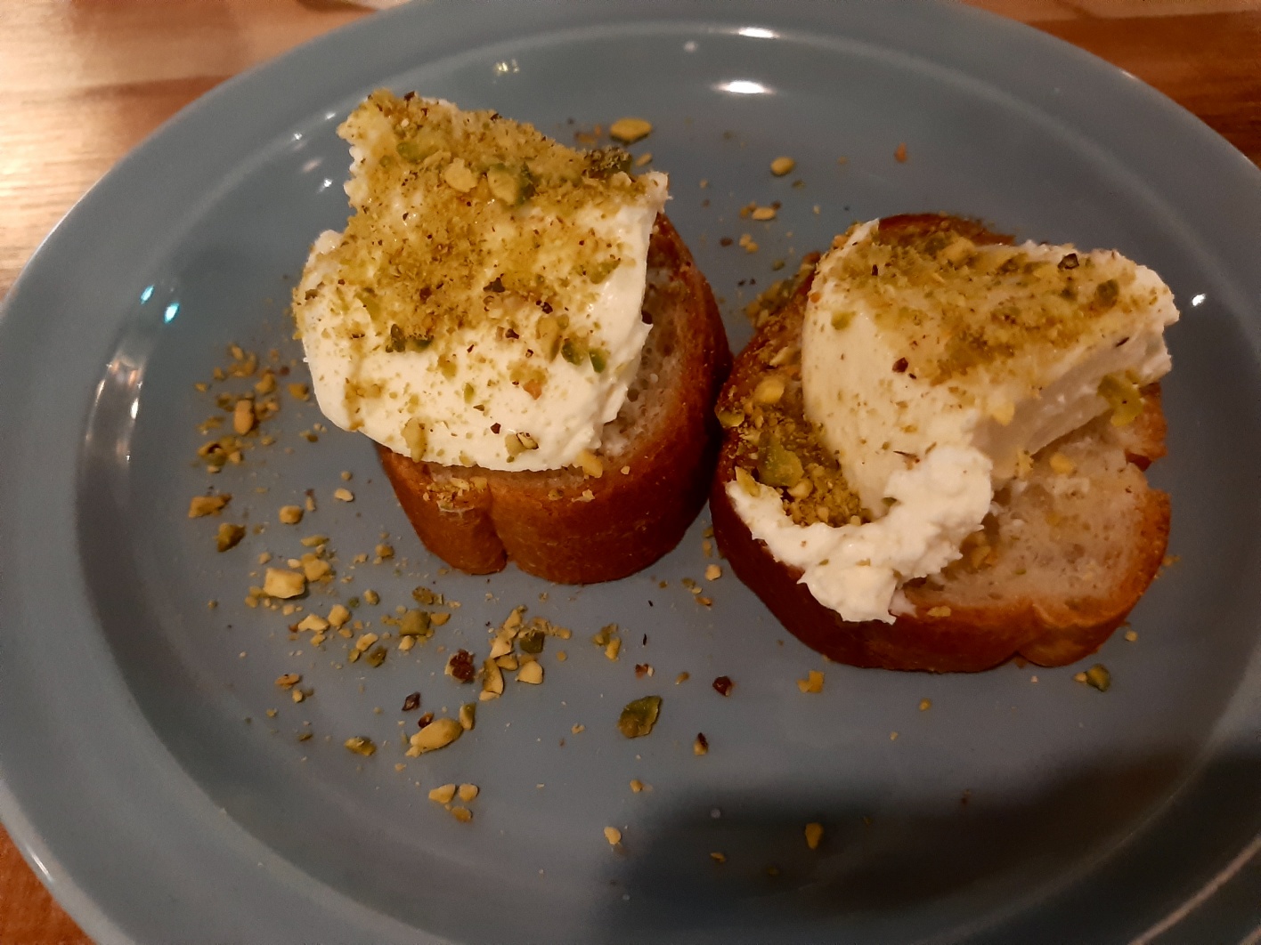 메뉴는 샐러드가 먼저 나오고, 감바스, 이베리코, 빠에야 순으로 나오고요, 리뷰 이벤트로 카이막이 나옵니다.