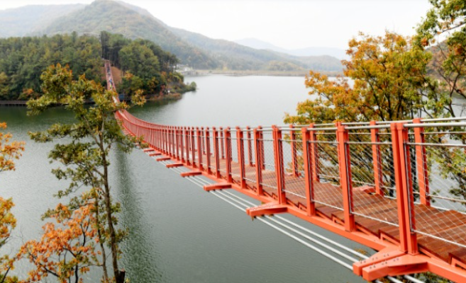 봄이 되면 더욱 아름다워지는 선성 수상길! 부교 위로 피어나는 봄꽃과 고요한 호수의 물결이 만나 특별한 풍경을 선사 합니다. 4월이면 호반 주변 벚꽃이 만발해 사진 촬영 명소로도 손색없습니다.