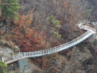 새순 돋는 계곡에서 봄의 생명력을 느낄 수 있는 월유봉 둘레길. 4월이면 주변 야생화와 연둣빛 새싹으로 가득 찬 풍경을 감상할 수 있습니다. 스카이워크에서 바라보는 봄 풍경은 그 자체로 힐링입니다.
