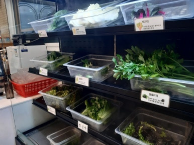 쌈밥집이라 쌈은 무한대로 먹을 수 있는 셀프입니다. 상추, 근대, 깻잎, 치커리,고추,쌈샐러리등이 있는데,