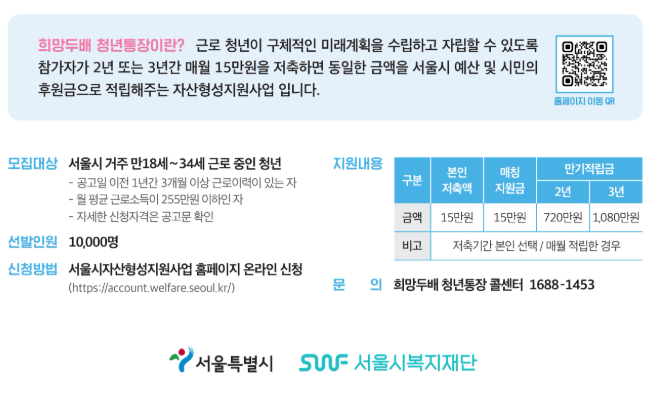 이러한 청년들에게 희망 두 배 청년통장은 단순한 ‘적금’ 이상의 의미를 갖습니다. 절약 습관을 만들고, 더불어 서울시가 함께 지원해 준다는 든든한 안정감을 느낄 수 있기 때문이죠.